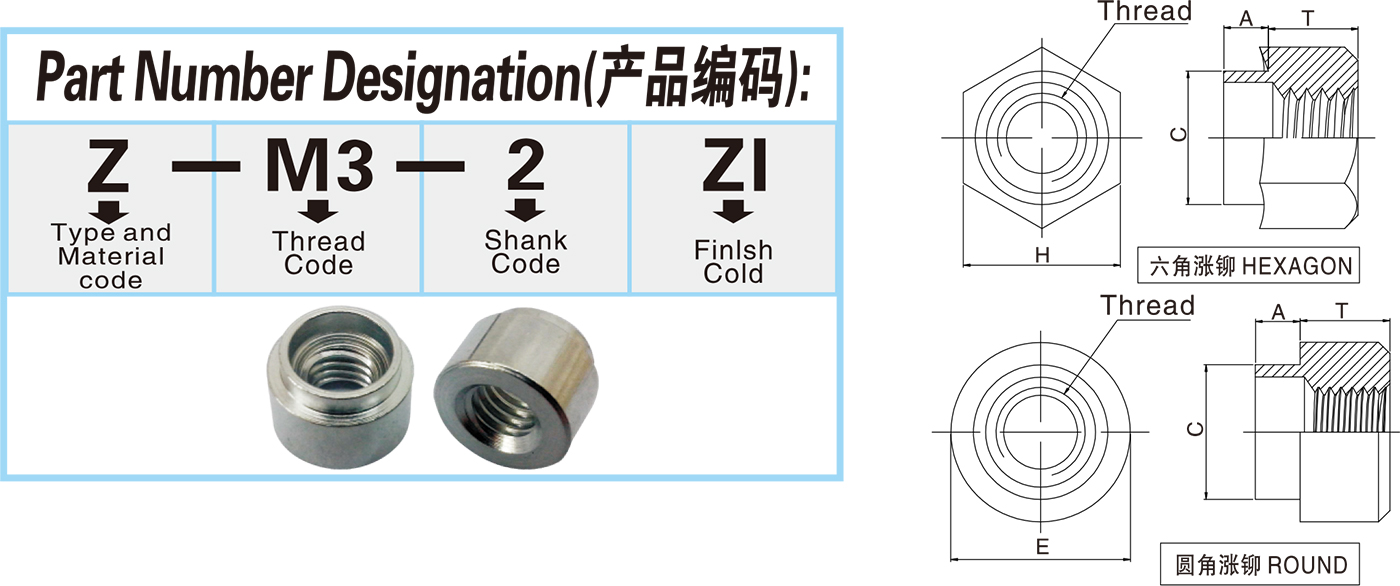 • 铝压铆螺母柱BSOA/SOA